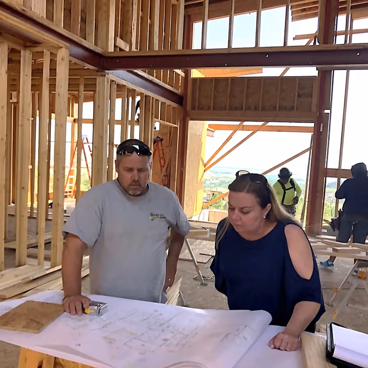 If you’ve contacted our Design-Build firm to discuss building, chances are that you first spoke with my interior designer wife and business partner, Jana. Working together over the past 9 years has given us the time to constantly hone our design-build process and we have come to realize that our construction and design skills perfectly complement one another, making us the ideal design-build team for our clients. Jana and I both assist the clients with locating a lot, and with finding and customizing a suitable house plan to become our clients’ dream home (or we work with an architect of our client’s choice to produce house plans from scratch). As the builder, I develop the site plan, seek site plan approval from the proper municipality, and then we begin clearing and grading the lot and installing utilities (if necessary). During this time, Jana takes the plans and assists the client with designing all cabinet drawings, fireplace designs, window and door details, and any other critical interior architectural elements. She and the design team then select all of the interior materials for the client—such as tile, hardwood flooring, lighting fixtures, plumbing fixtures, paint, interior and exterior doors, cabinet hardware, door hardware and any additional interior details that you can imagine. Every detail is designed and considered prior to building.